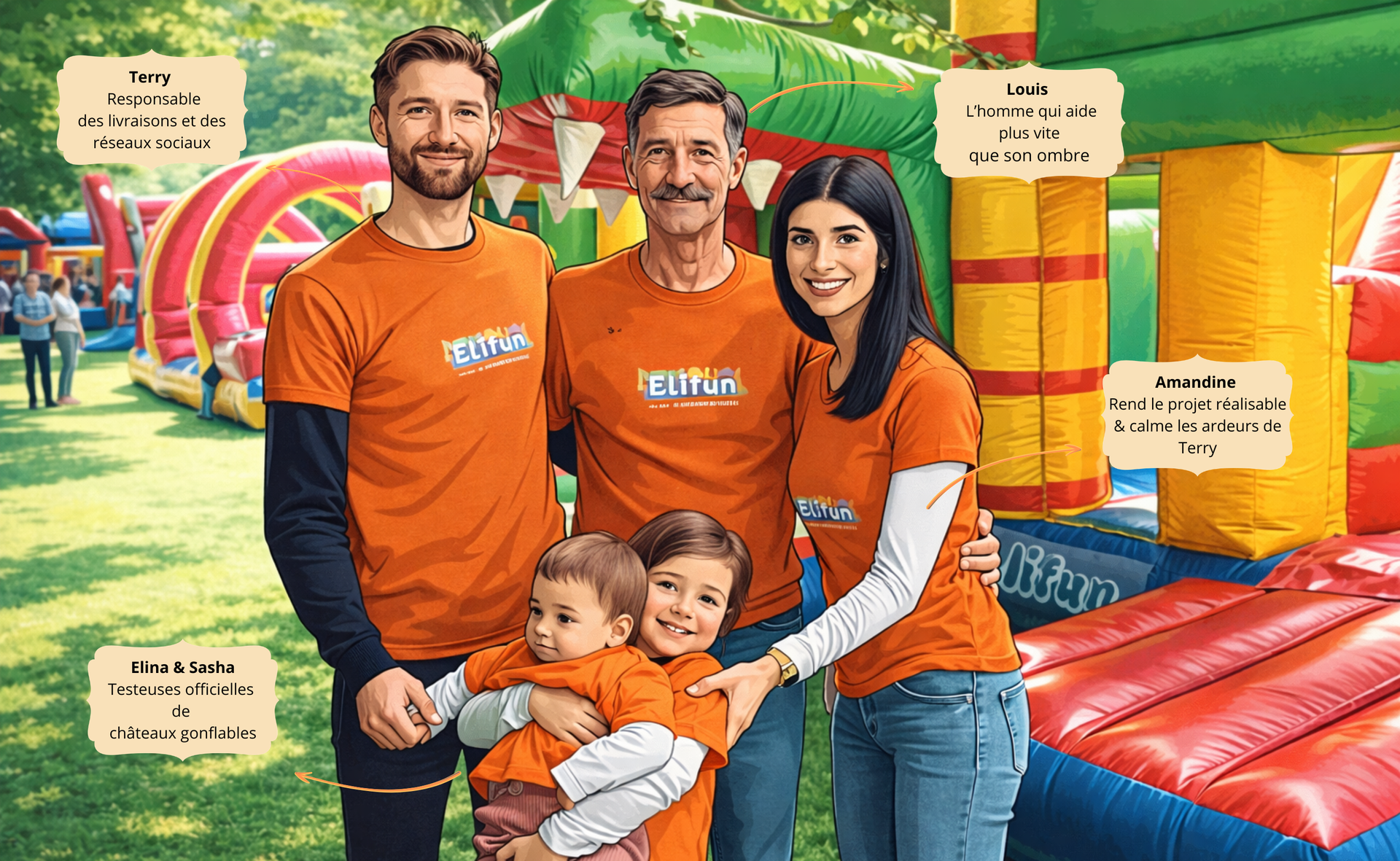 La seule condition était de ne pas faire quelque chose qui allait transformer notre temps en argent mais plutôt notre argent en temps. Et les châteaux gonflables nous sont tombé dessus !